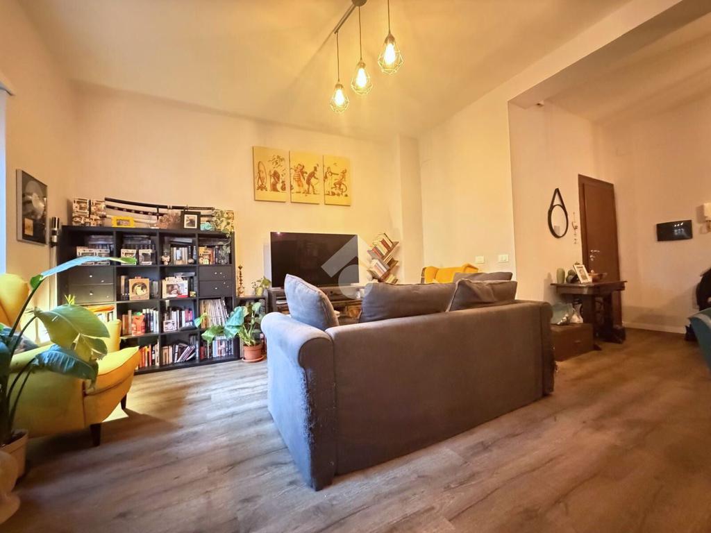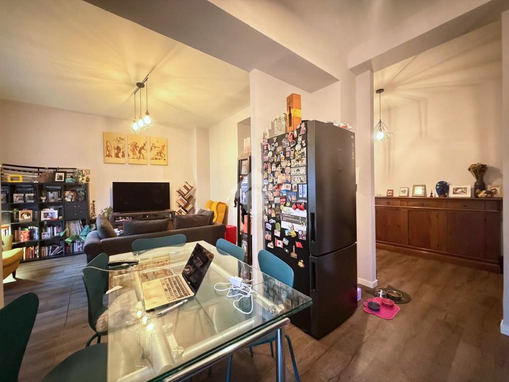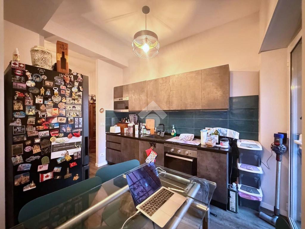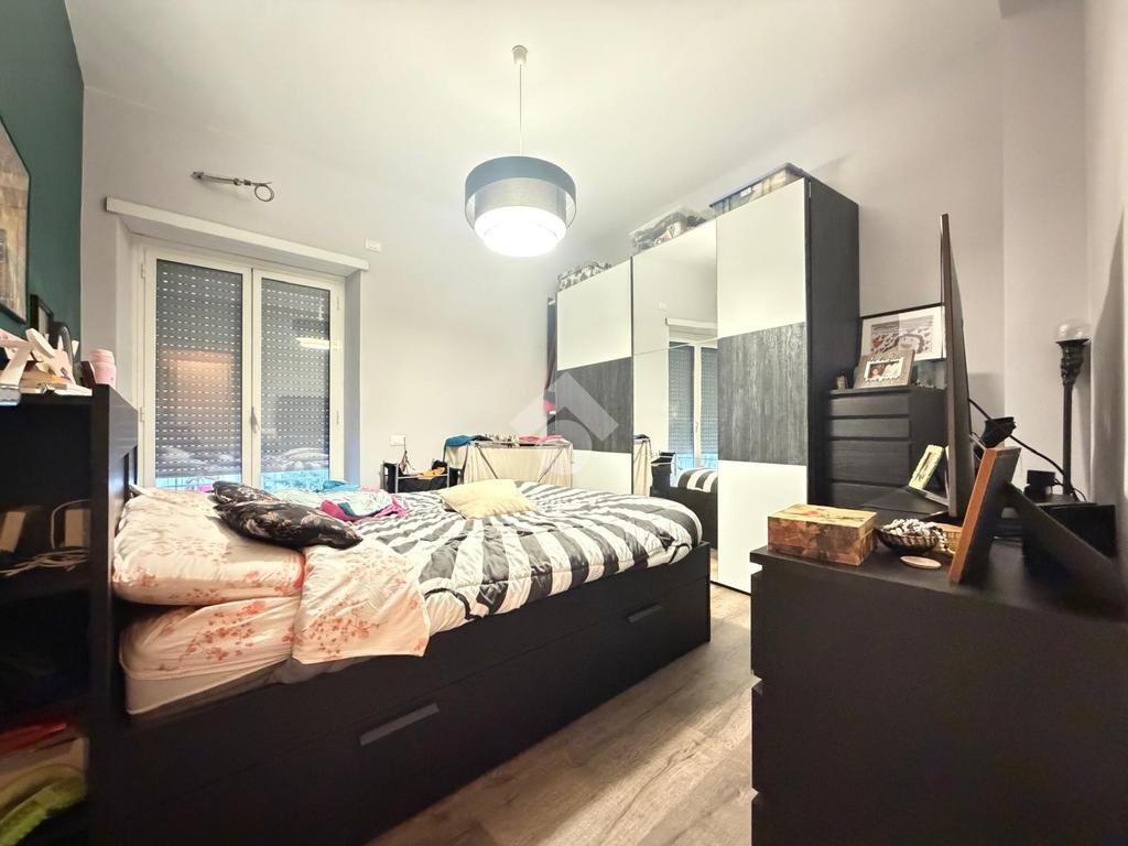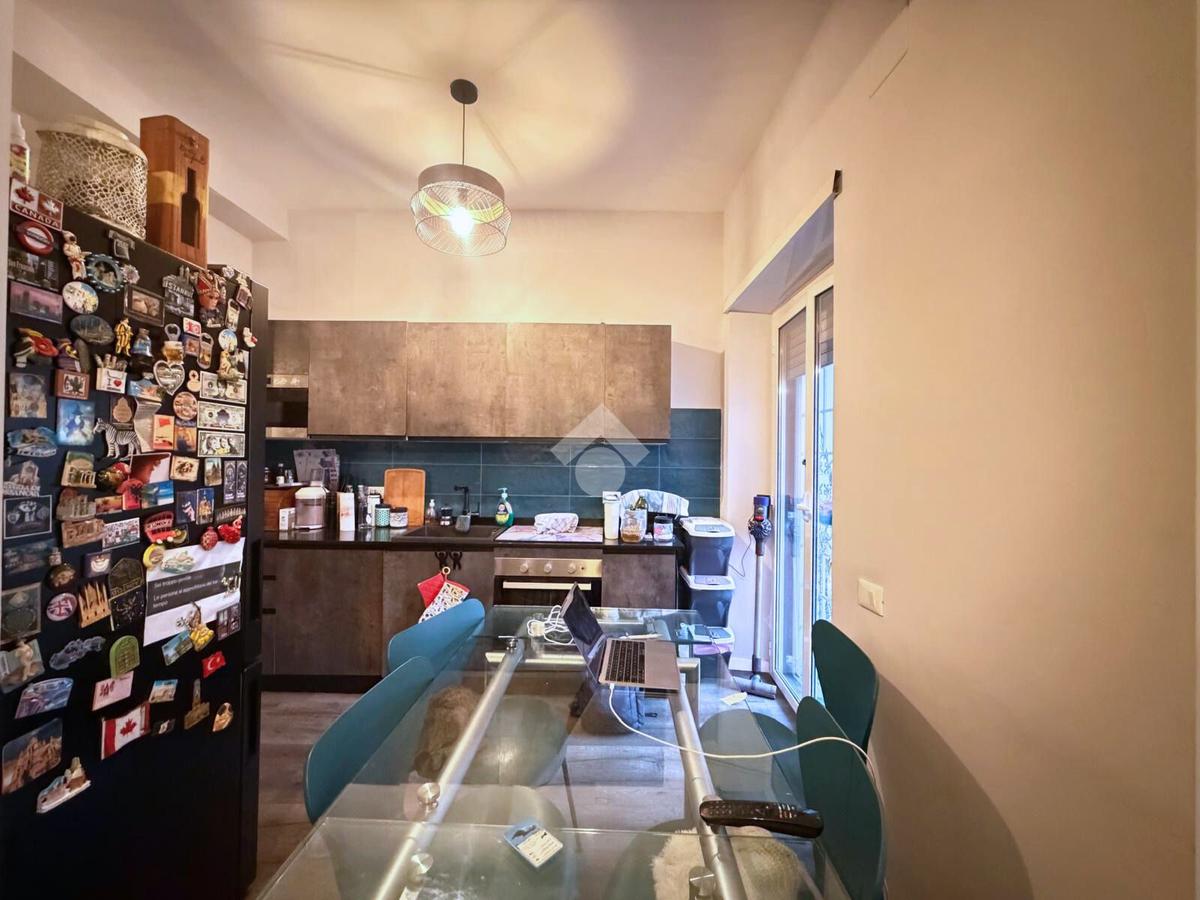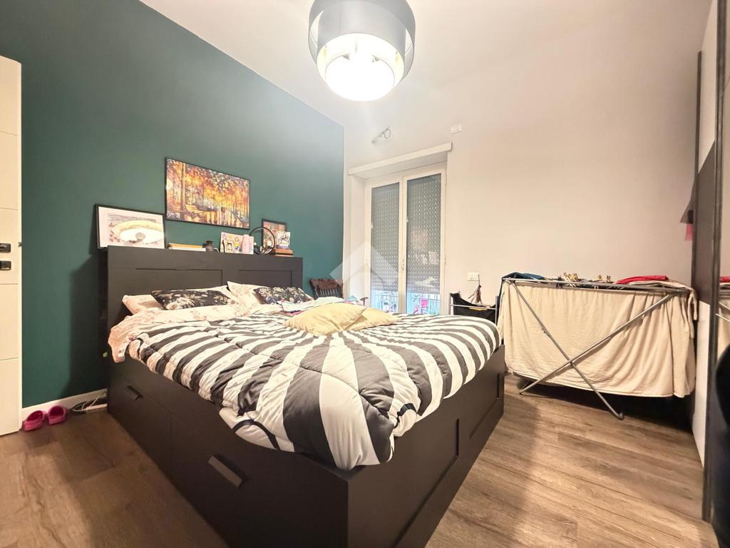 L'immobile è composto da ampio salone con cucina a vista, due camere da letto, ripostiglio, un bagno finestrato e due balconi.